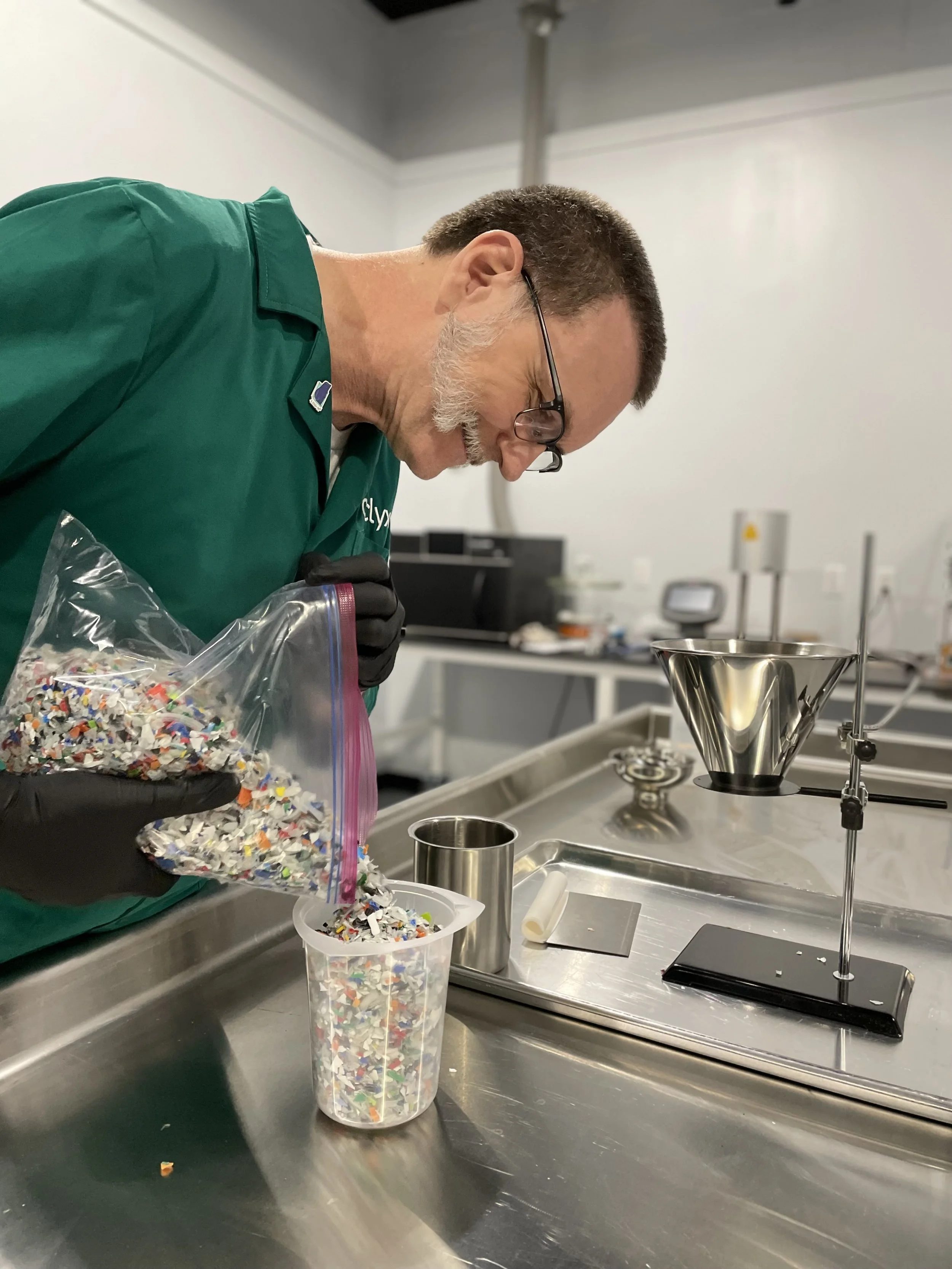 What sets Cyclyx apart is our ability to process and analyze highly-variable mixed plastic waste streams. At our Cyclyx Circularity Lab in New Hampshire, we perform more than a dozen specialized tests to characterize plastic waste. These evaluations assess both physical properties and chemical composition, including the concentration of potential contaminants. Our techniques include ion chromatography, gas chromatography, microwave digestion, and optical emission spectroscopy.
